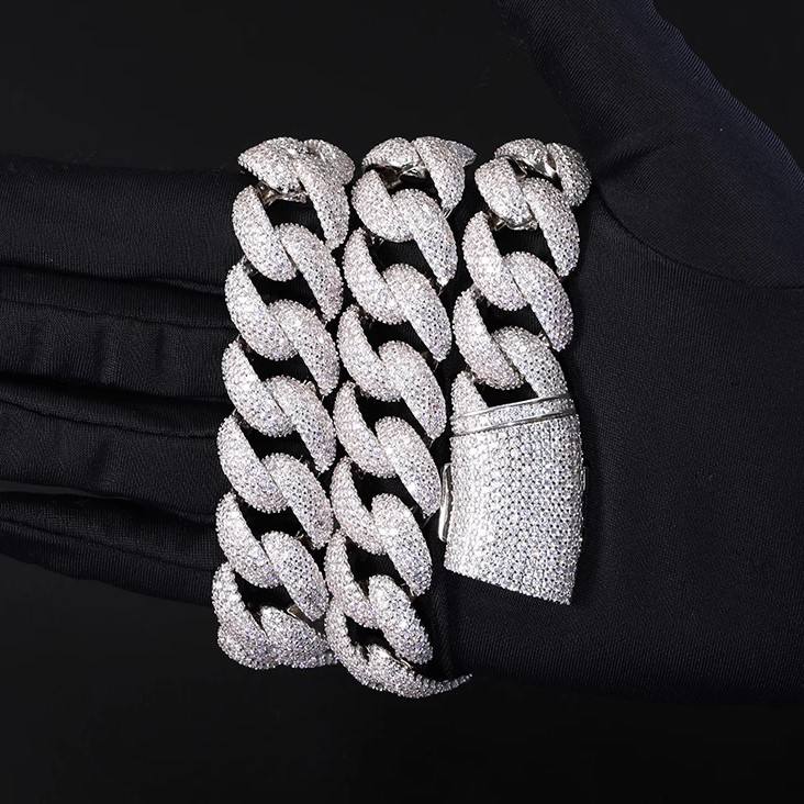 IGI Certified 18K White Gold Plated 925 Sterling Silver Men's Link Chain High Quality VVS Moissanite Trendy Flower Diamond Gold