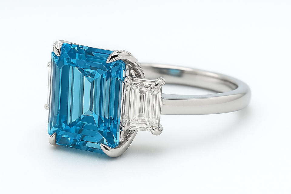 Product Name:Emerald Shape Blue Lab Grown Diamond Ring in 18k White Gold