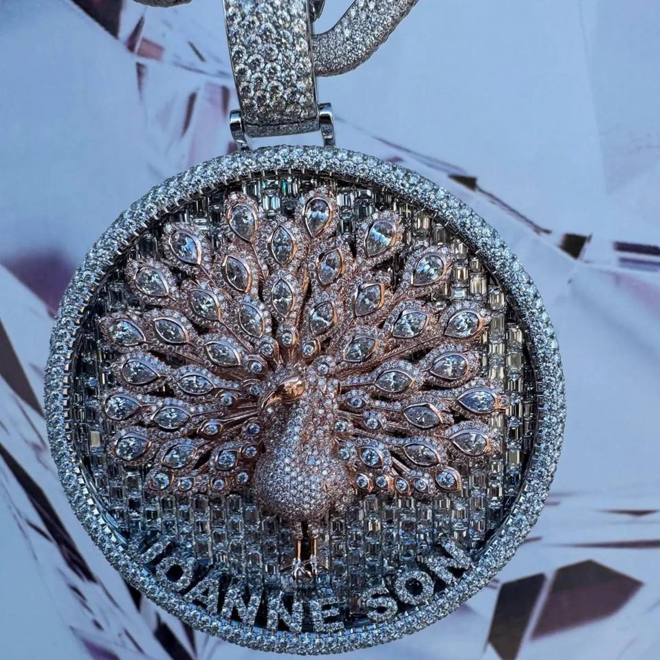 IGI Certified 925 Sterling Silver 14k/18k Solid Gold Peacock Pendant for Men Custom VVS Moissanite Diamond Hip Hop Style Fine