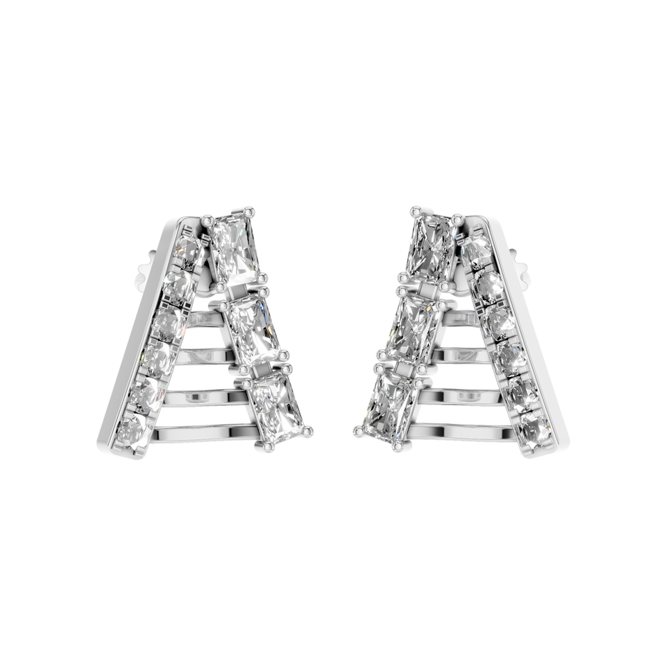 IGI Certified 925 Sterling Silver Geometric Emerald Cut Stud Earrings Elegant Minimalist Trendy for Wedding Gift White Gold