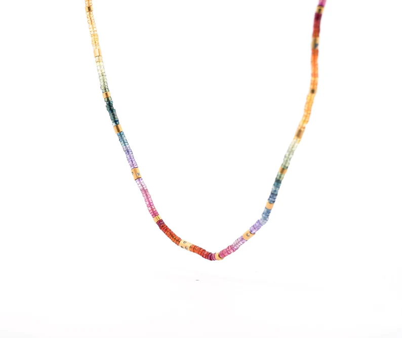 IGI Certified Classic Sapphire Bead Rainbow Multi Color Alloy Necklace in 14K Gold Plated for Women's Party Fashion Jewelry