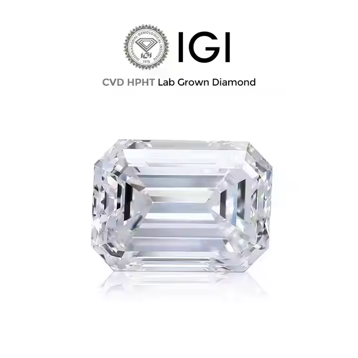 IGI Certified Emerald Cut Lab Grown Diamond VVS1 Clarity F Color CVD Stone for Solitaire Pendant Stud Earring and Designer Ring