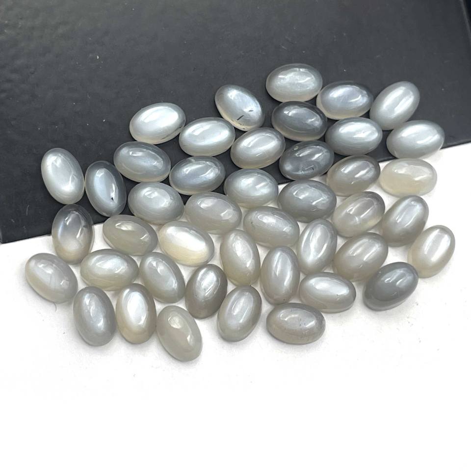 IGI Certified High Quality 100 CT Natural Grey Moonstone Cabochon 4X6MM Loose Gemstone Lot Round/Heart/Pear Shape for Jewelry