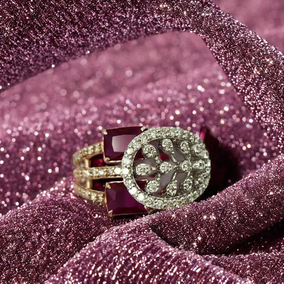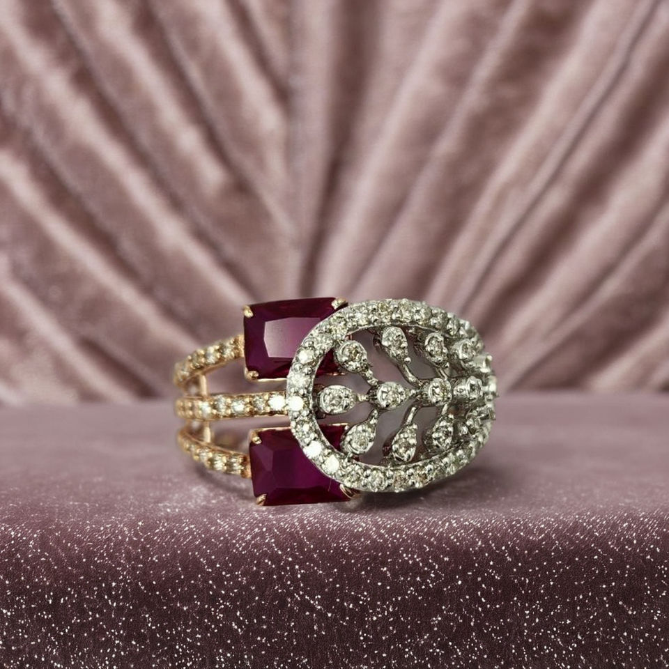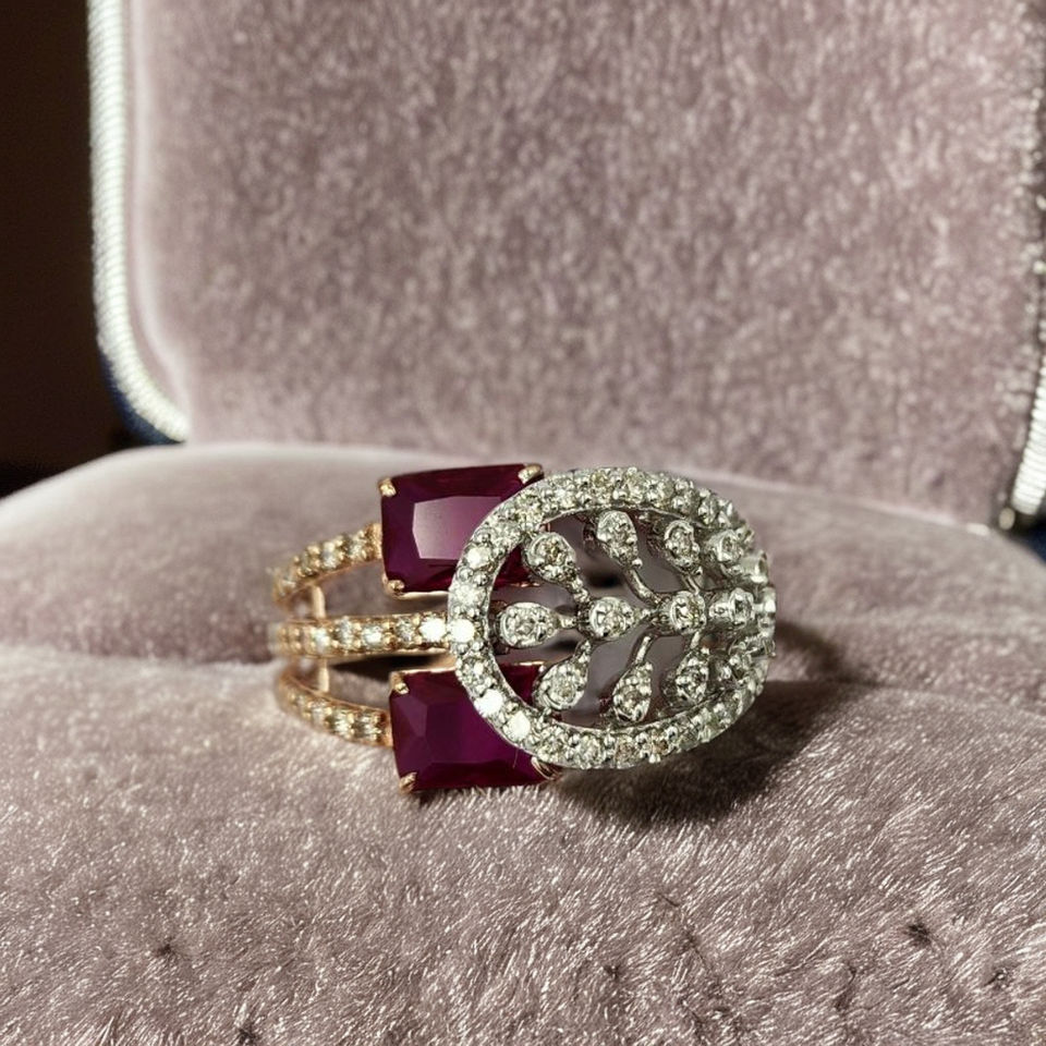 IGI Certified Italian Design 14kt Gold Natural 2.10 Ct Brilliant Cut Diamond Rhodium Plated Rose Gold Trendy Cocktail Party Ring