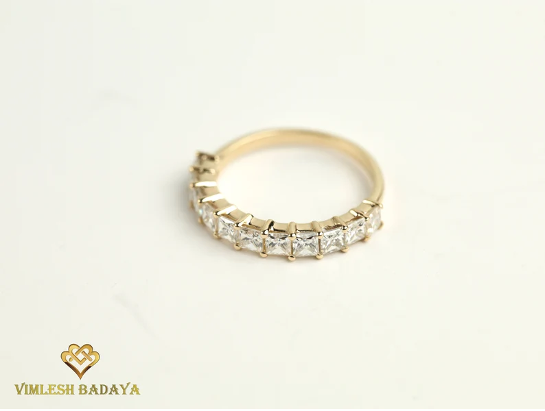 IGI Certified Lab Diamond Wedding Band Princess Cut Half Eternity Ring Lab Grown Diamond Anniversary Ring 14K Solid Gold Jewelry