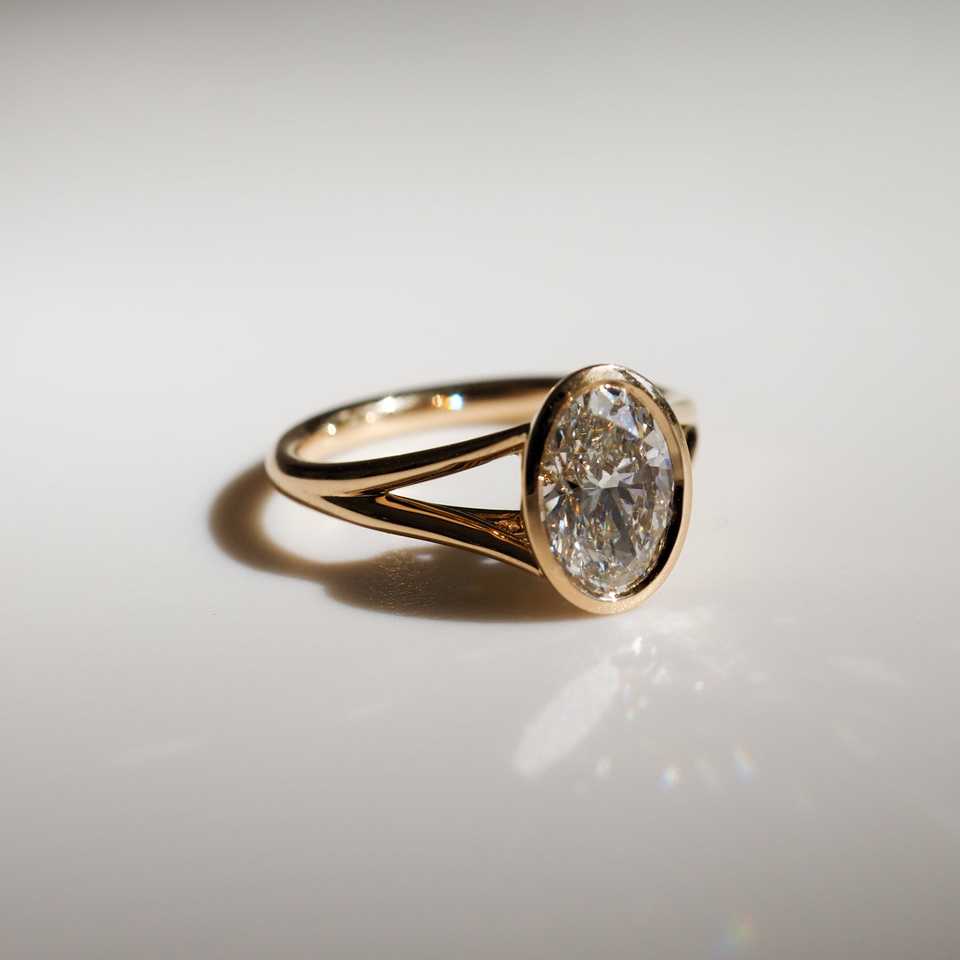 IGI Certified Lab Grown Diamond Bezel Set Engagement Ring 2.0 Ct Oval Lab Diamond Bridle Ring Solitaire 14k Yellow Gold CVD Ring