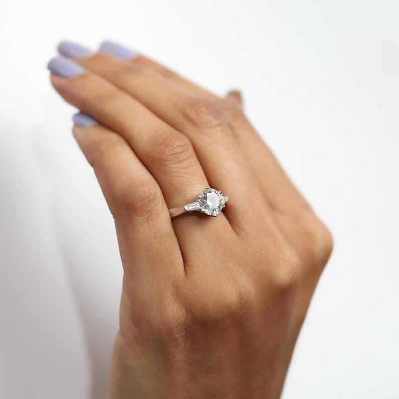 IGI Certified Lab Grown Diamond Round Cut Engagement Ring With Tapered Side Diamonds In 14K Solid Gold Luxury Bridal Anniversary
