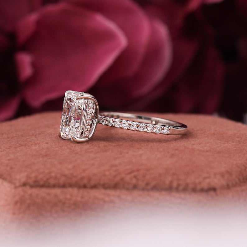 IGI Certified Radiant Cut Lab Grown Diamond Engagement Ring Unique Design Pave Wedding Band Handmade Trendy Jewelry
