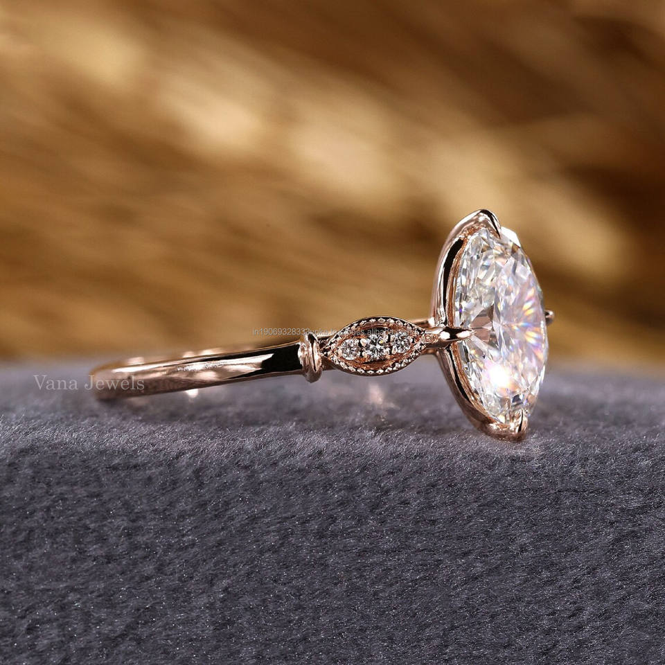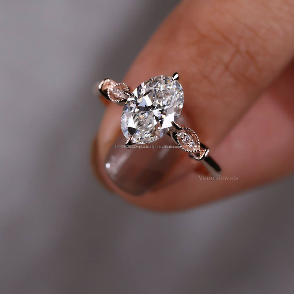 IGI Certified Vintage Oval Lab Grown Ring 14k Solid Gold Trendy Compass Prong Design Women's Engagement Anniversary Wedding Gift