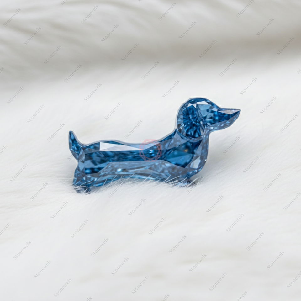 Blue Dachshund Dog Shape Loose Diamond
