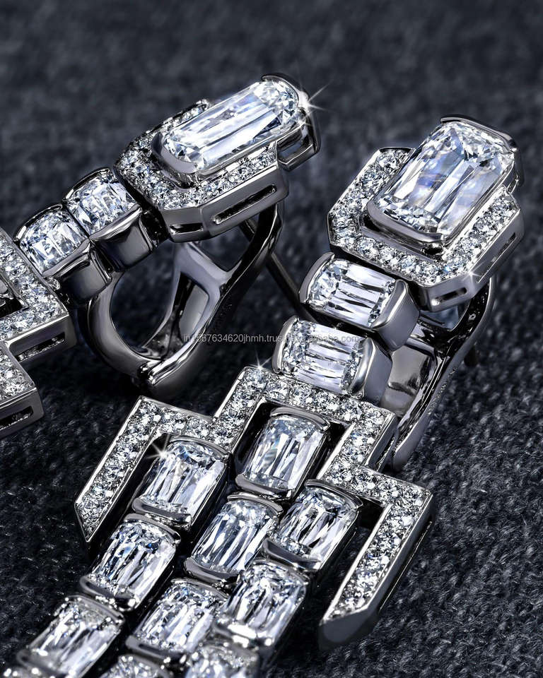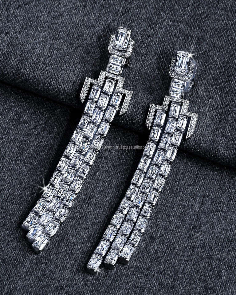 IGI/GIA Lab Grown Vintage 14k White Gold Earring Round Emerald Pear Diamonds Unisex Perfect Anniversary & Party