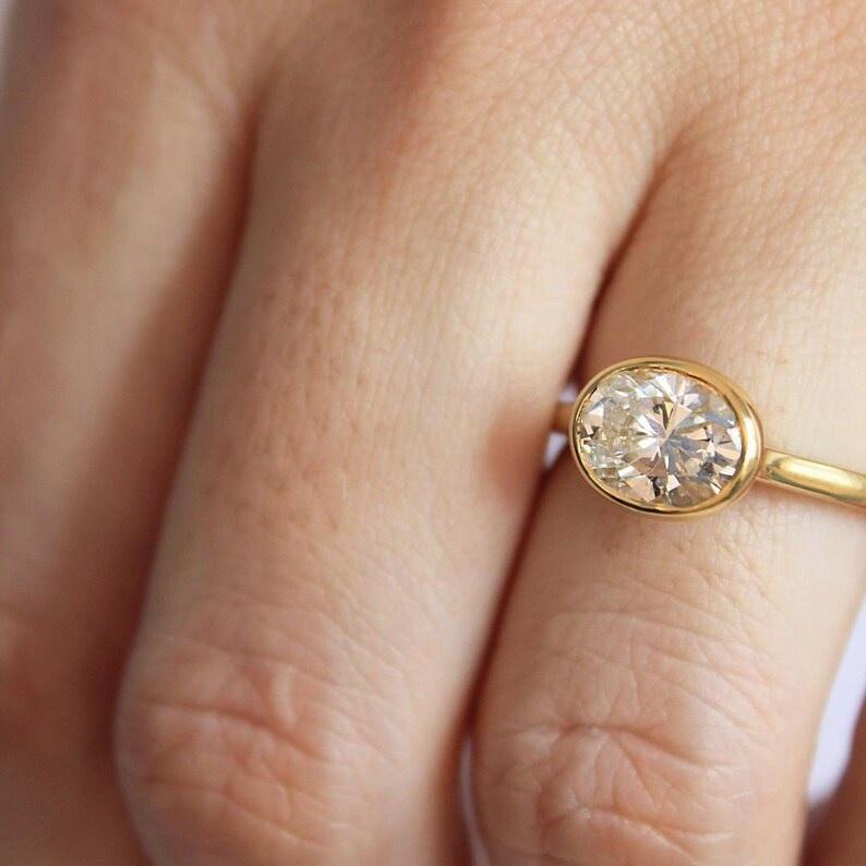 IGI Oval Lab Grown Diamond Ring 14K Solid Yellow Gold Lab Created Diamond Ring for Wedding and Engagement Ring or Band