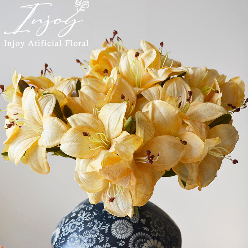 IJ029 Injoy China Factory Hot Sell Handmade Soft High Simulation Silk Lily Flowers Artificial Decoration for Christmas