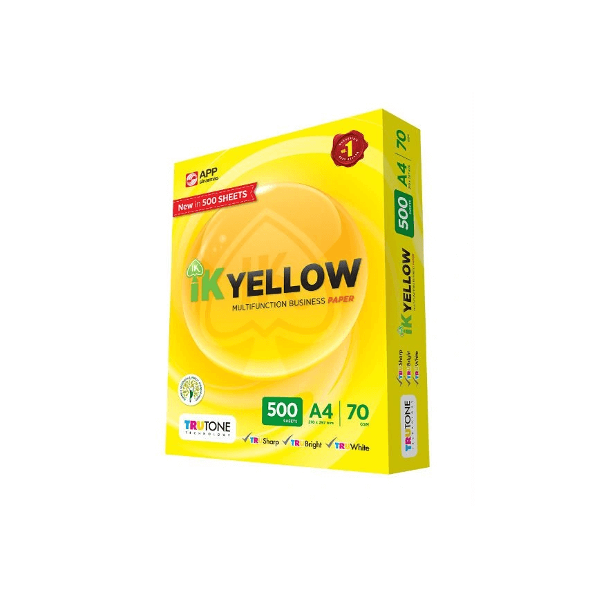 IK Yellow A4 Copy Paper available at discount price for bulk supply and wholesale purchase