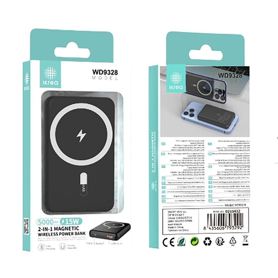 IKREA WD9328 Magnetic 2-in-1 Power Bank 15W 5000mAh Black - Power Bank and Chargers