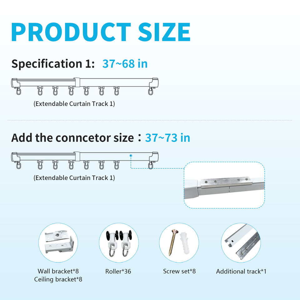 IKSUN Factory Home Decor Extendable Curtain Track Wall Ceiling Mount Adjustable 95-537cm Telescopic Aluminium Curtain Rail Track