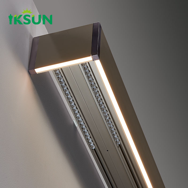IKSUN Modern Curtain Pelmet Decoration Aluminum Ceiling Mounted Curtain Cover Box Double Curtain Pelmet Track with LED Light