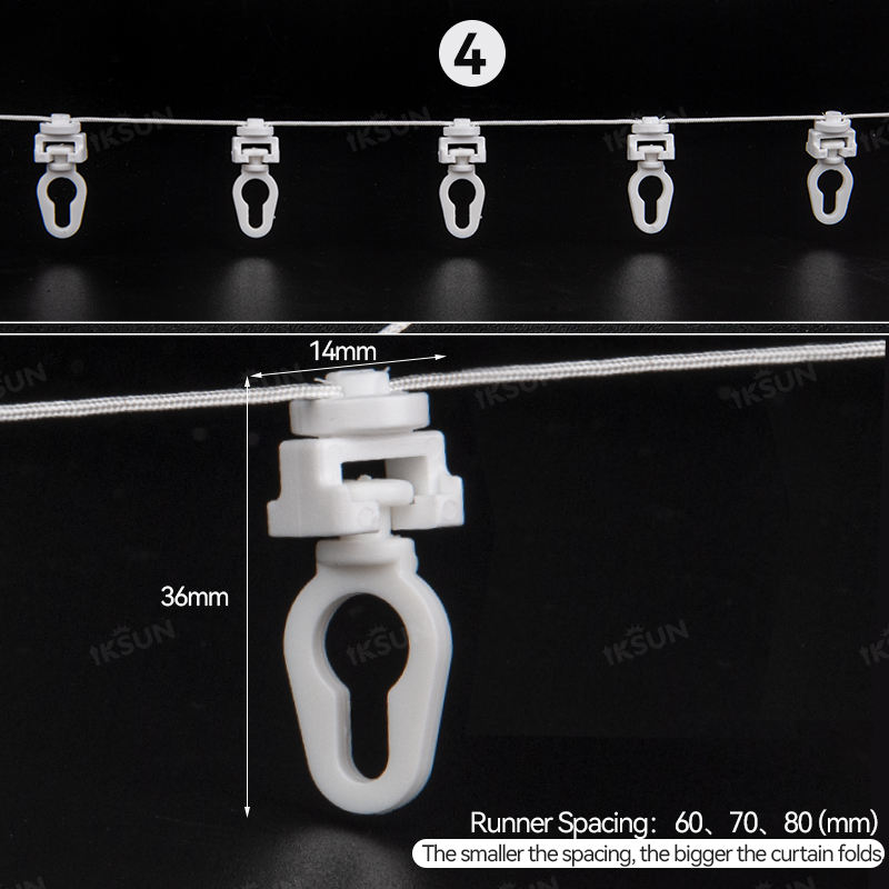 IKSUN Premium Quality S Wave Curtain Track Accessories Ripple Fold Curtain Runner 60/70/80mm Track Hooks Runner