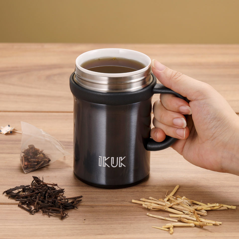 IKUK IKMI-410C Classic Custom Logo Color 13Oz Stainless Steel Double Wall Vacuum Mug Porcelain Liner Handle 4-6hrs Hot 8-10hrs