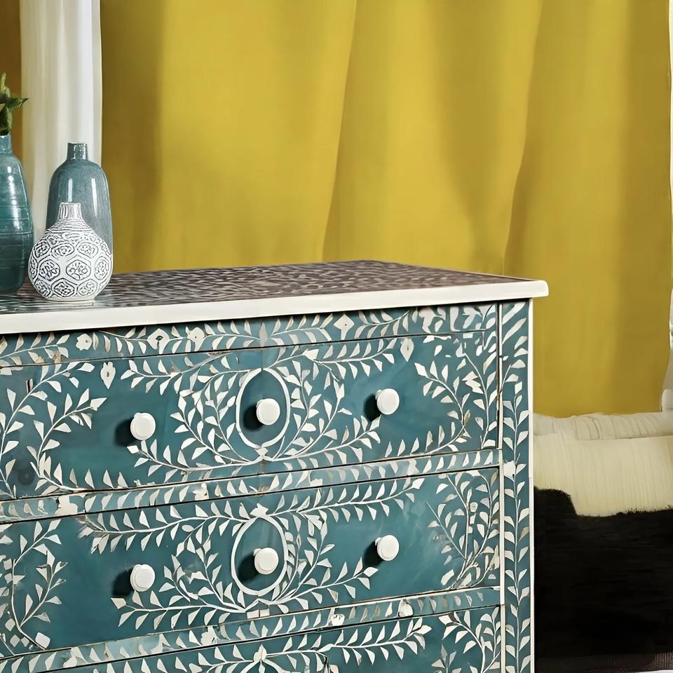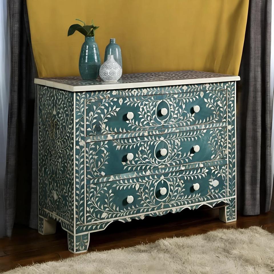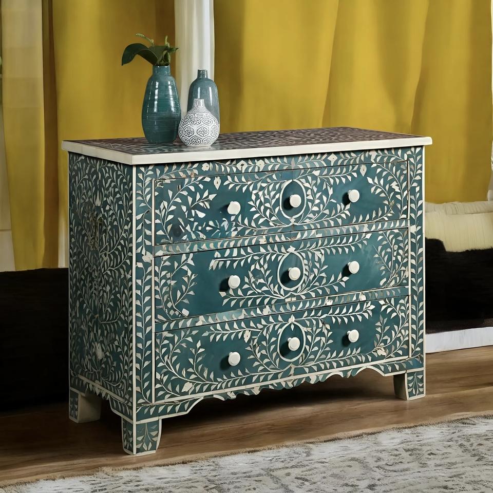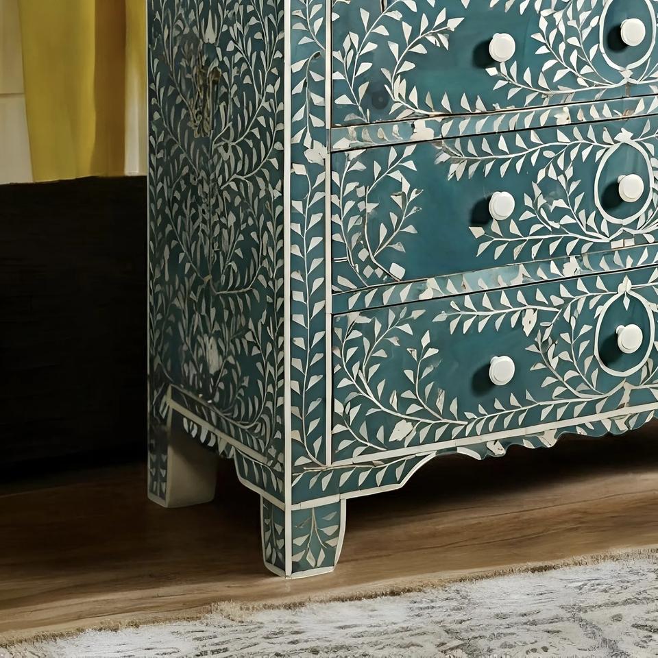 ILAHI's Bone Inlay Drawer Modern Design Agate Detailing Storage Portable Home Furniture