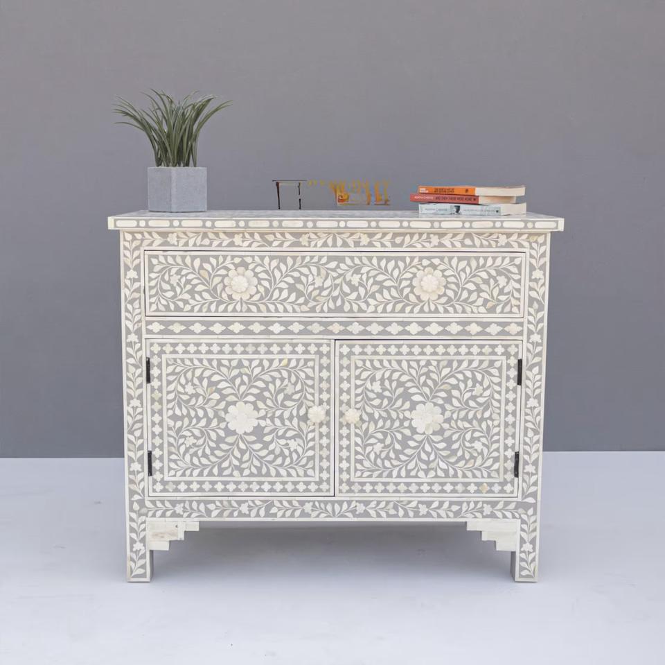 ILAHI's Bone Inlay Drawer Modern Design Agate Detailing Storage Portable Home Furniture