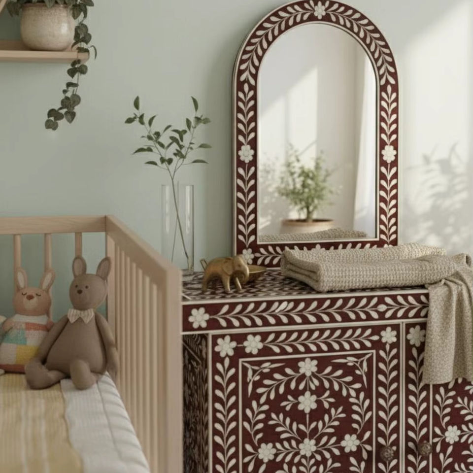 ILAHI's Bone Inlay Drawer Modern Design Agate Detailing Storage Portable Home Furniture