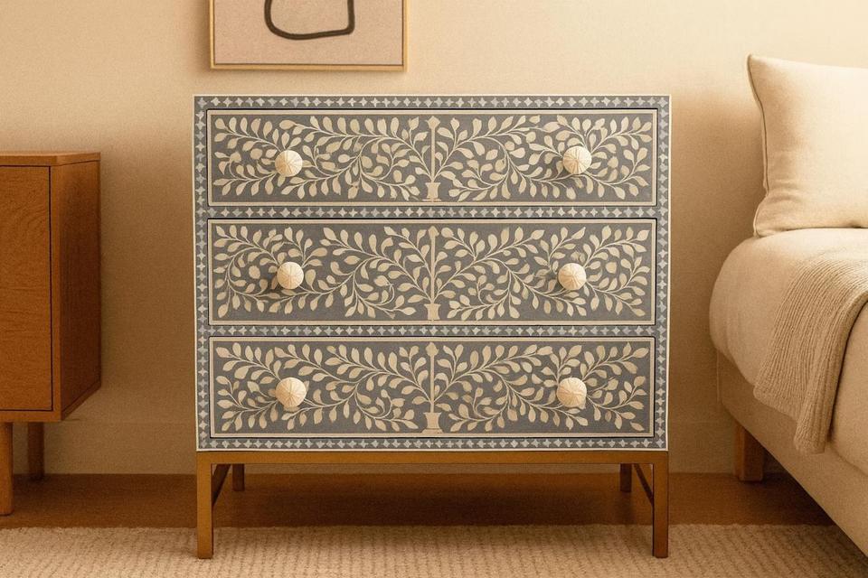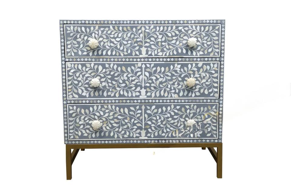 ILAHI's Bone Inlay Drawer Modern Design Agate Detailing Storage Portable Home Furniture