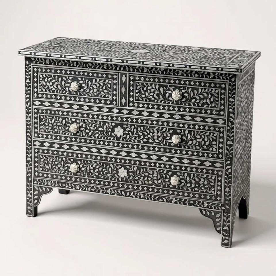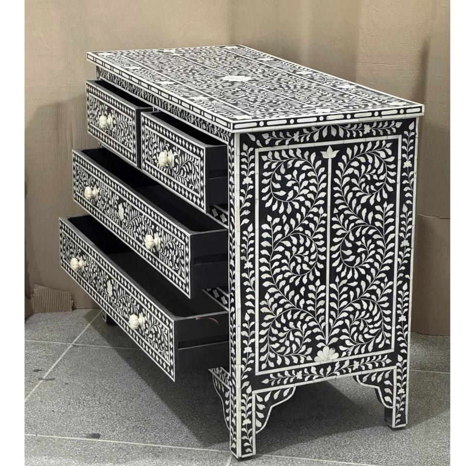 ILAHI's Bone Inlay Drawer Modern Design Agate Detailing Storage Portable Home Furniture