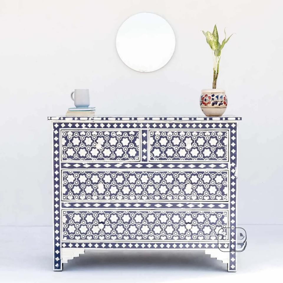 ILAHI's Bone Inlay Drawer Modern Design Agate Detailing Storage Portable Home Furniture
