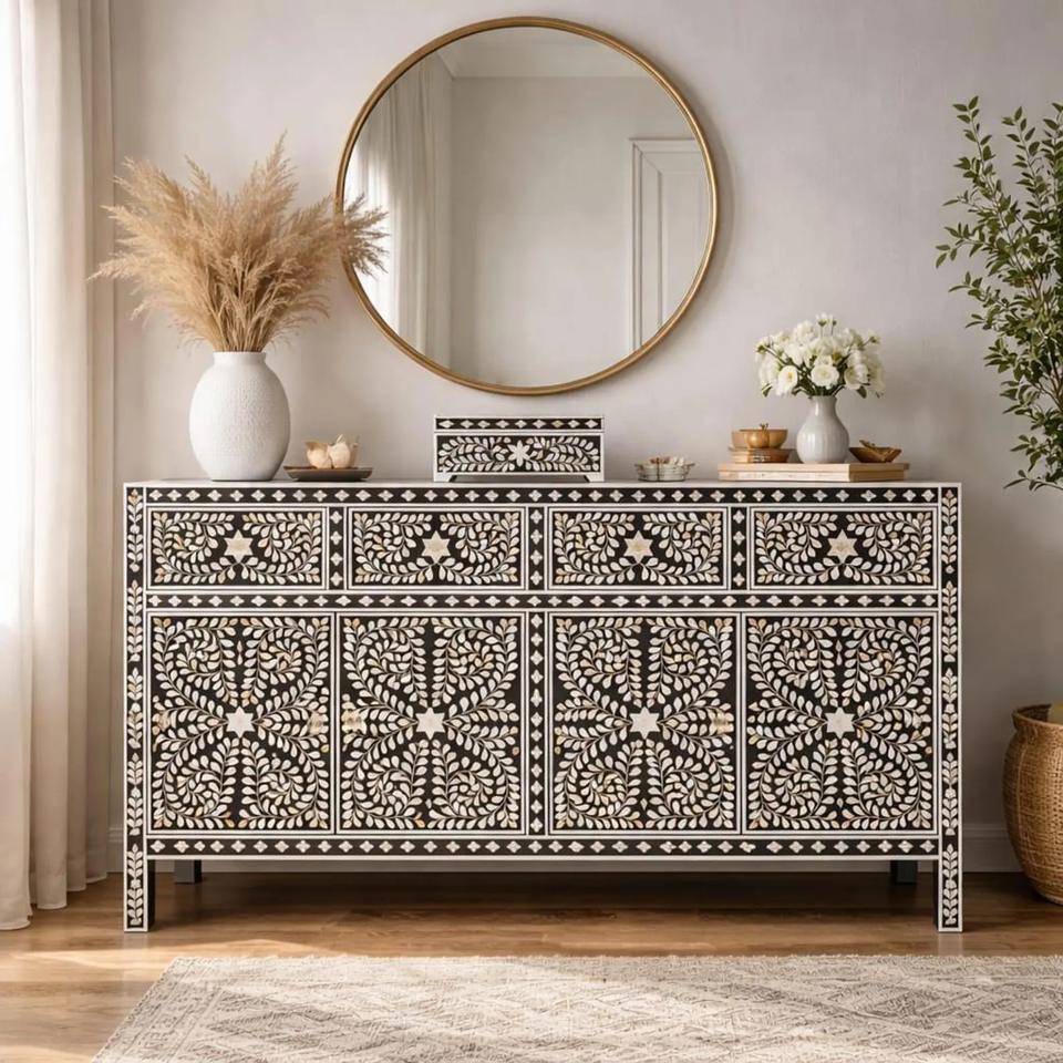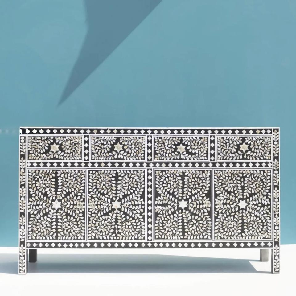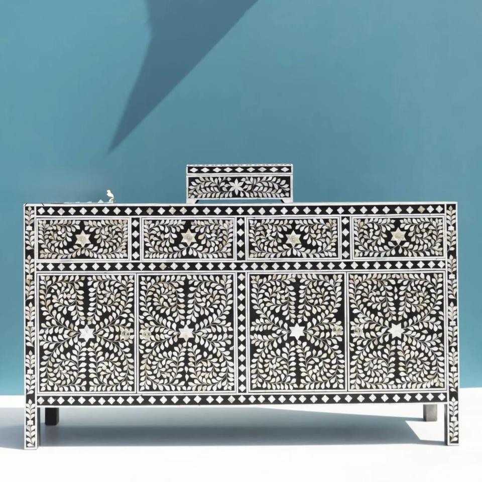ILAHI's Bone Inlay Drawer Modern Design Agate Detailing Storage Portable Home Furniture