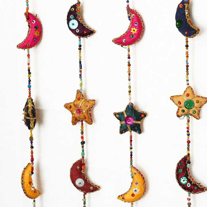 INDIAN HANGING STAR & Moon Wall Door Decoration Hanging Indian Gift for Home Eco-Friendly Hanging String Decor