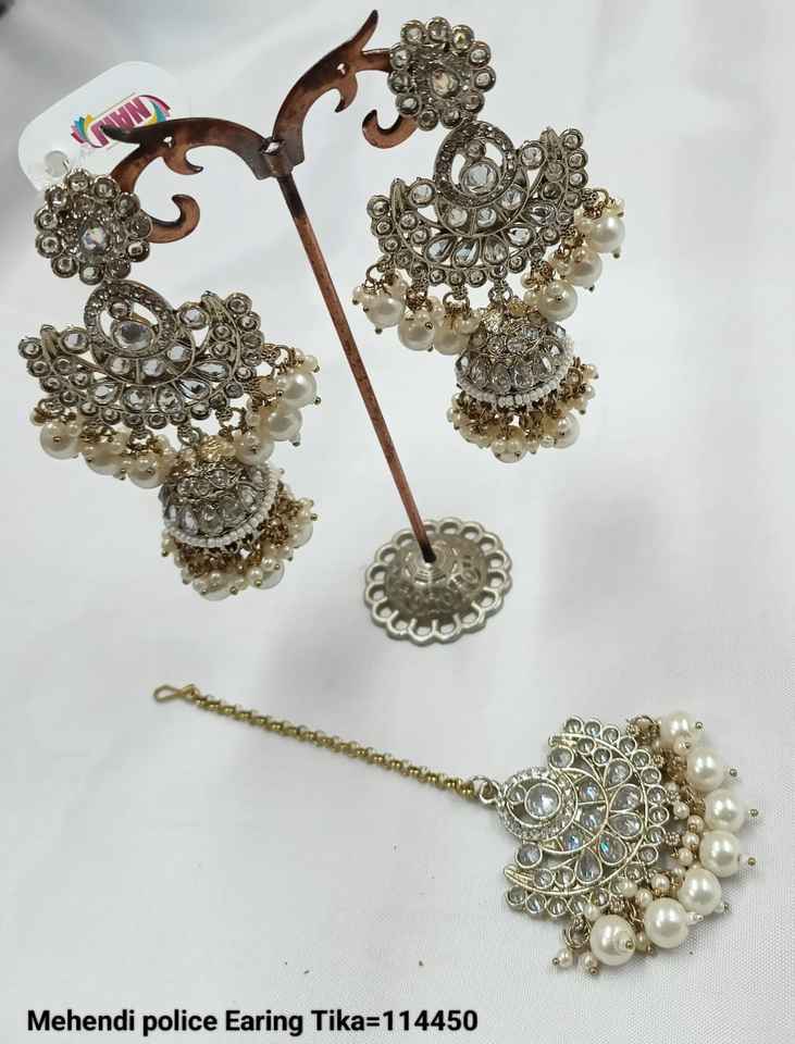 INDIAN MEHNDI POLISH TRADITIONAL and FASHIONABLE WITH PEARL EARRINGS and MANGTIKKA SET for WOMEN & GIRLS