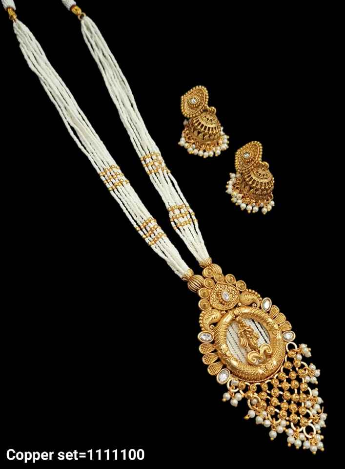 INDIAN TRADITIONAL and FASHIONABLE COPPER JEWELLERY BRIDAL WEDDING JEWELLERY SET for WOMEN EARRINGS and NECKLACE SET