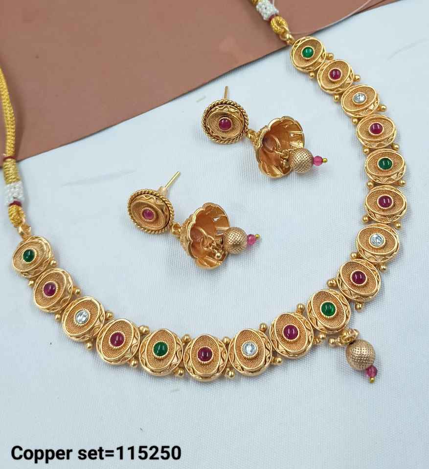 INDIAN TRADITIONAL and FASHIONABLE COPPER JEWELLERY BRIDAL WEDDING JEWELLERY SET for WOMEN EARRINGS and NECKLACE SET