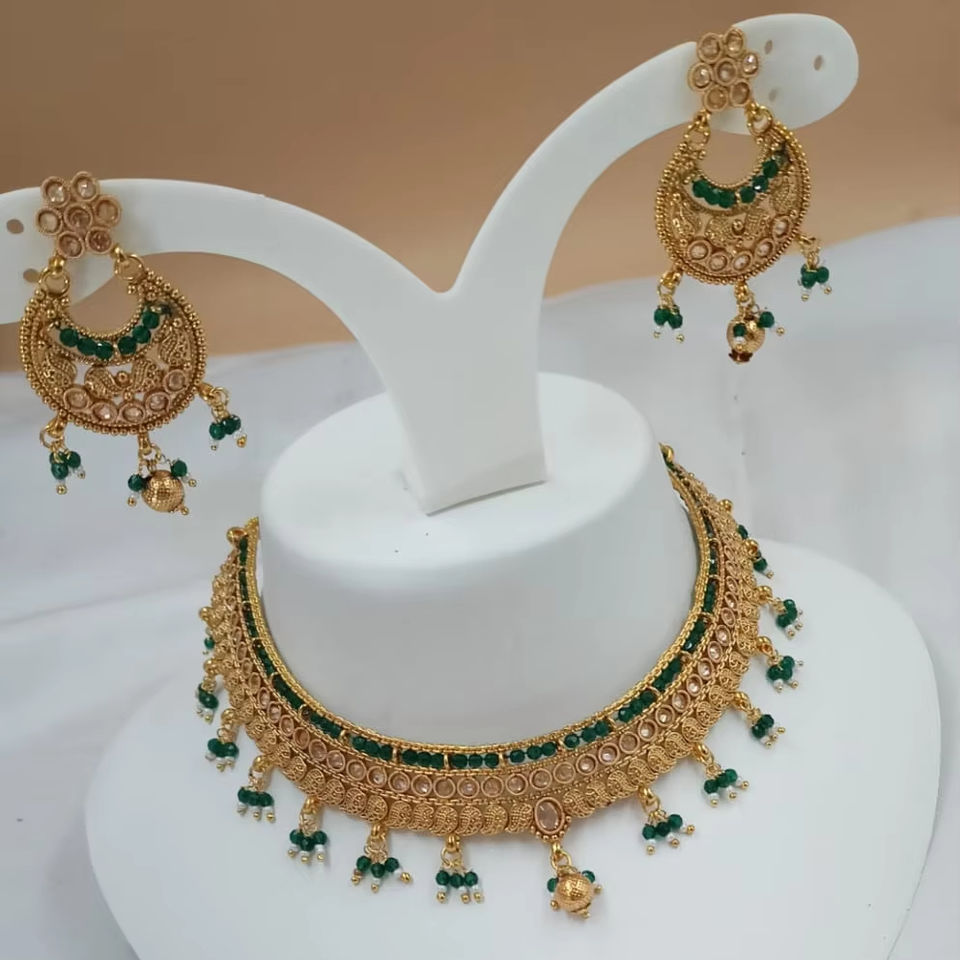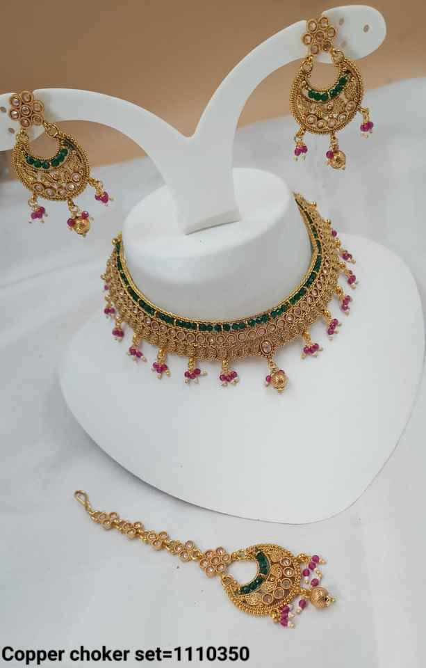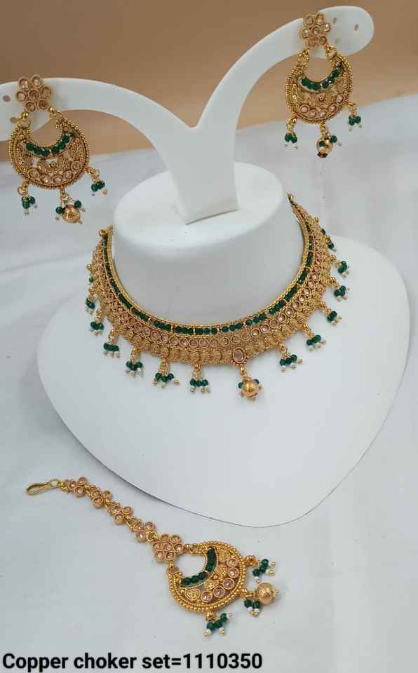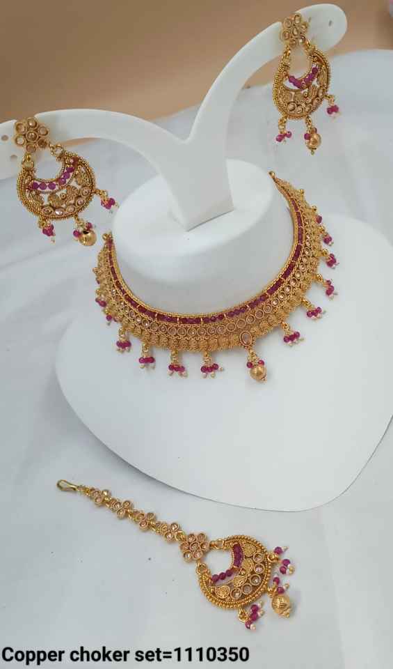 INDIAN TRADITIONAL and FASHIONABLE COPPER JEWELLERY BRIDAL WEDDING JEWELLERY SET for WOMEN EARRINGS and NECKLACE SET