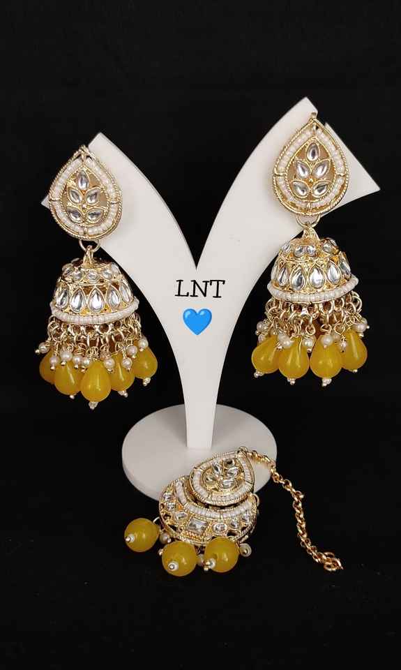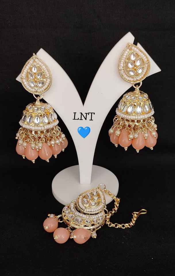 INDIAN TRADITIONAL and FASHIONABLE LATEST DESIGN WITH PEARL EARRINGS CHANDELIER EARRINGS MANGTIKKA SET for WOMEN and GIRLS