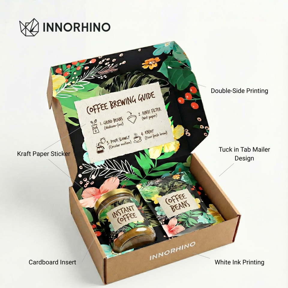 Custom Eco-Friendly Corrugated Mailer Box with Insert | Double-Sided Printed Kraft Packaging for Coffee & Skincare Subscription