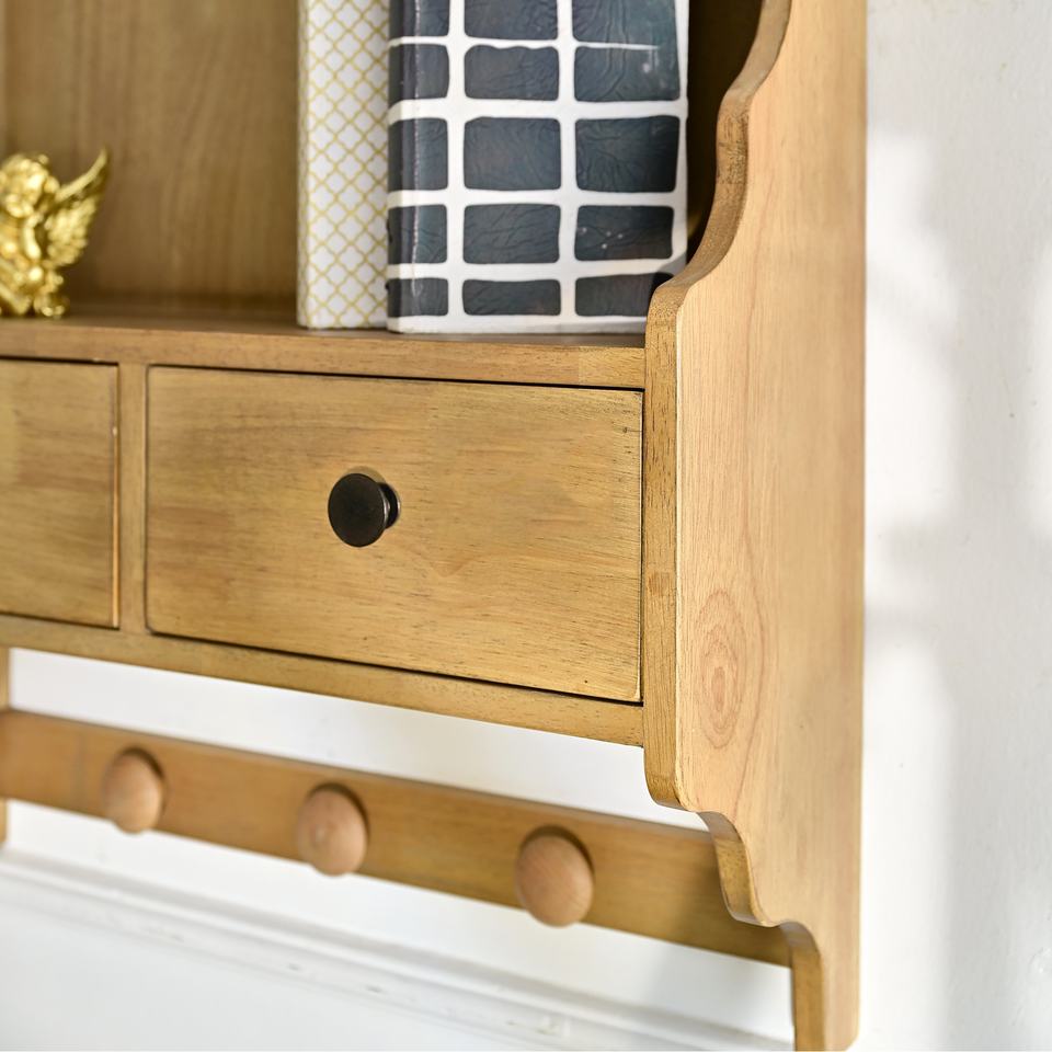 INNOVA Classic Home Living Room Decorative Wooden Wall Hanging Floating Shelf Storage Drawer Iron Frame Storage Holders Racks