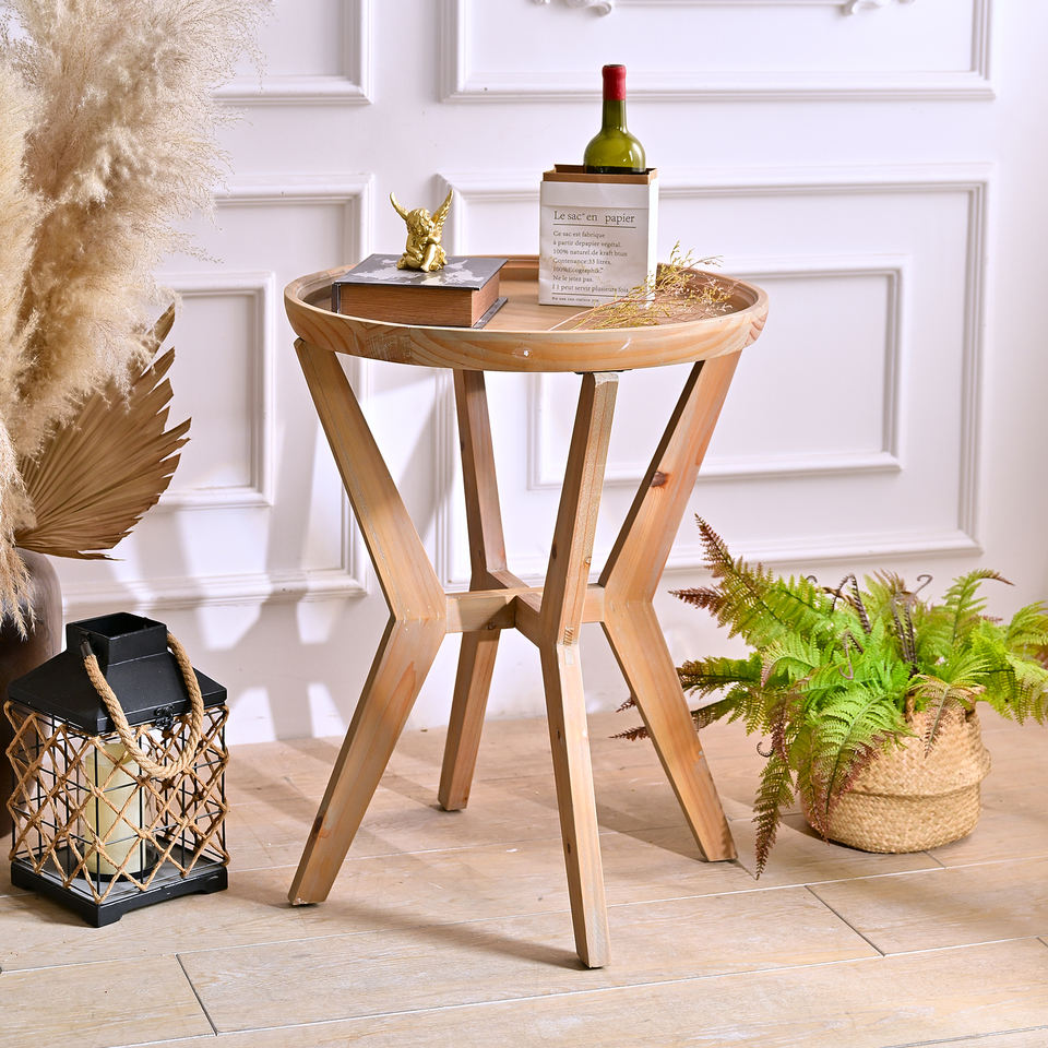 INNOVA HOME Natural Style Solid Wood Round Coffee Table with Tray Decorative Foldable Antique Design for Living Room Furniture