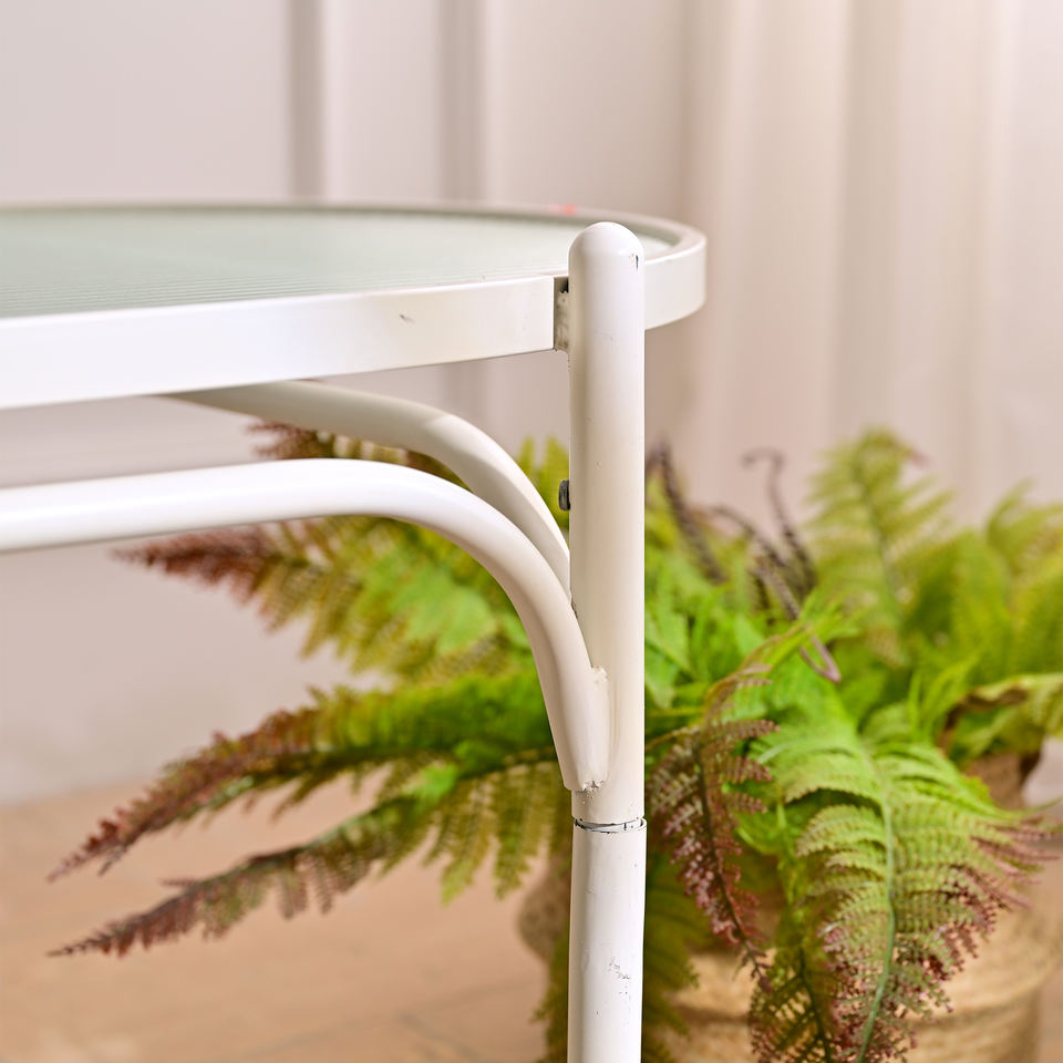 INNOVA Home European Style Oval Design White Metal and Glass Tabletop Decorative Durable Easy Assembly Living Room Coffee Table