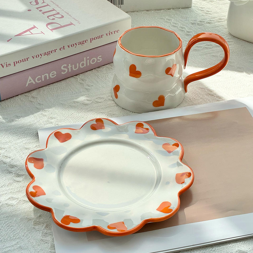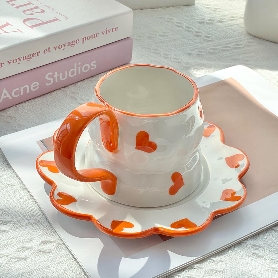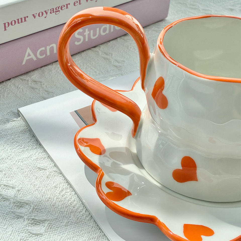 INS Hand-molded Creative Ceramic Coffee Cup and Saucer Set, Irregular Hand-painted Cute Cup Set