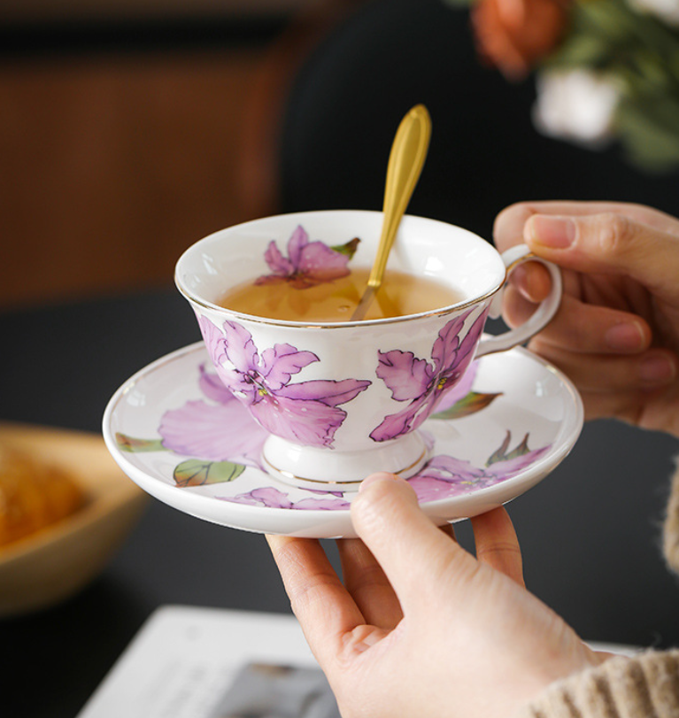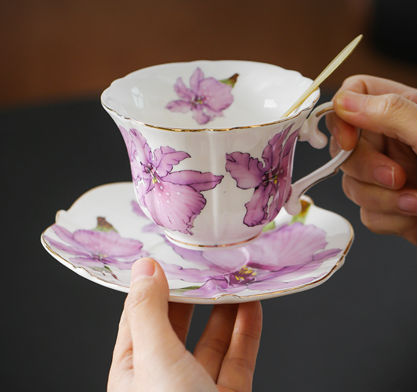 INS Popular Purple Lily Gold-Plated Luxurious Ceramic Flower Cup And Saucer