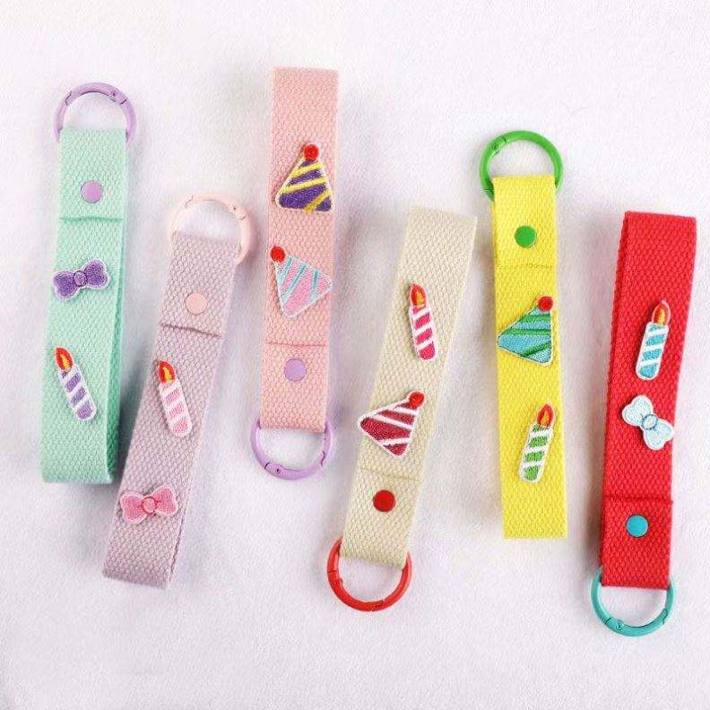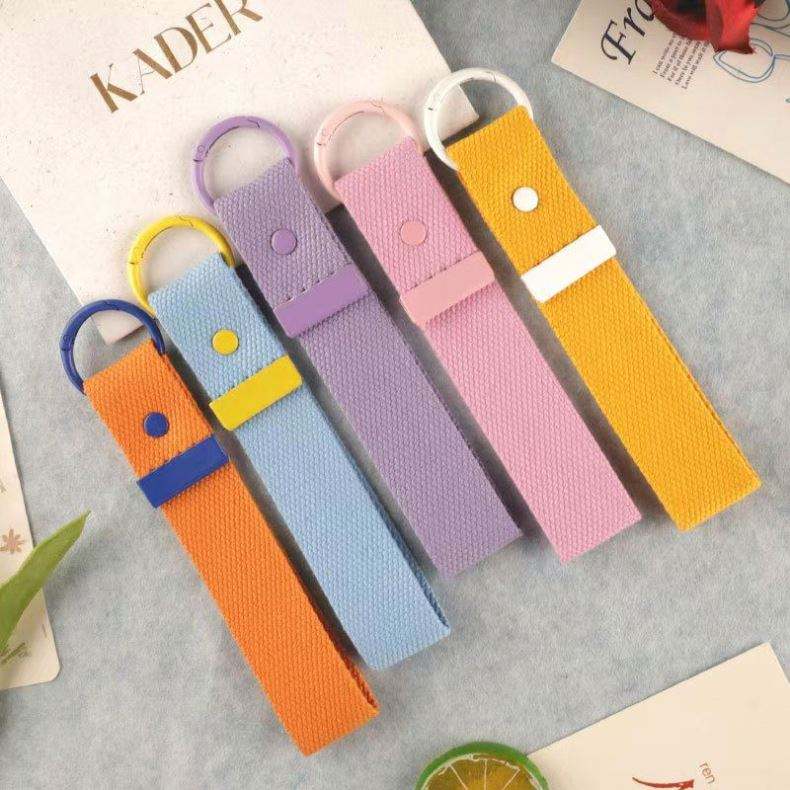 INS Style Korean Keychain Macaron Color Canvas Embroidery Luggage Strap Blank DIY Name Strip