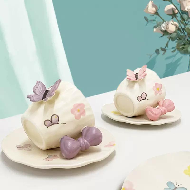 Product Name:Girly Butterfly pattern Ceramic Coffee cup and saucer set