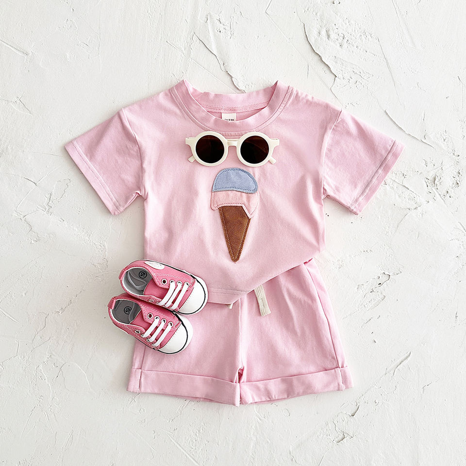 INS Summer Children's Ice Cream Patch Short Sleeve Set Korean Version Baby Two Piece Set Children's Clothing Wholesale