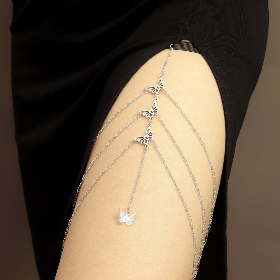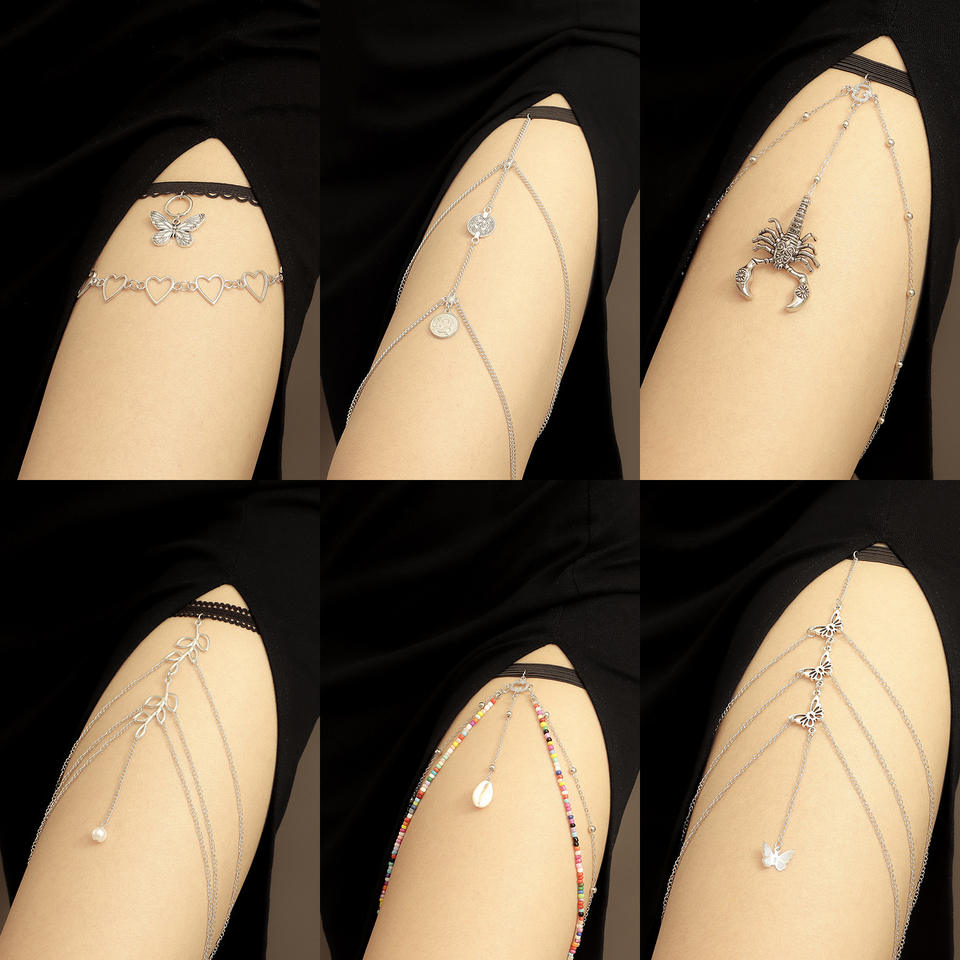 INS Summer Internet Celebrity Sexy Thigh for Women Elastic Alloy Beach Tassel Ring Leg Chain