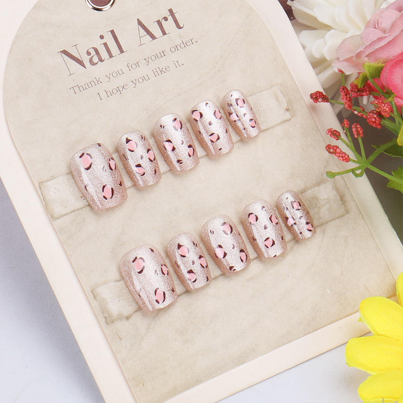 INS Wearable Nails High-End Cat Eye Leopard Print Sweet Girl Stickers Xiaohongshu Hot-Selling Detachable Fake Nail Tips