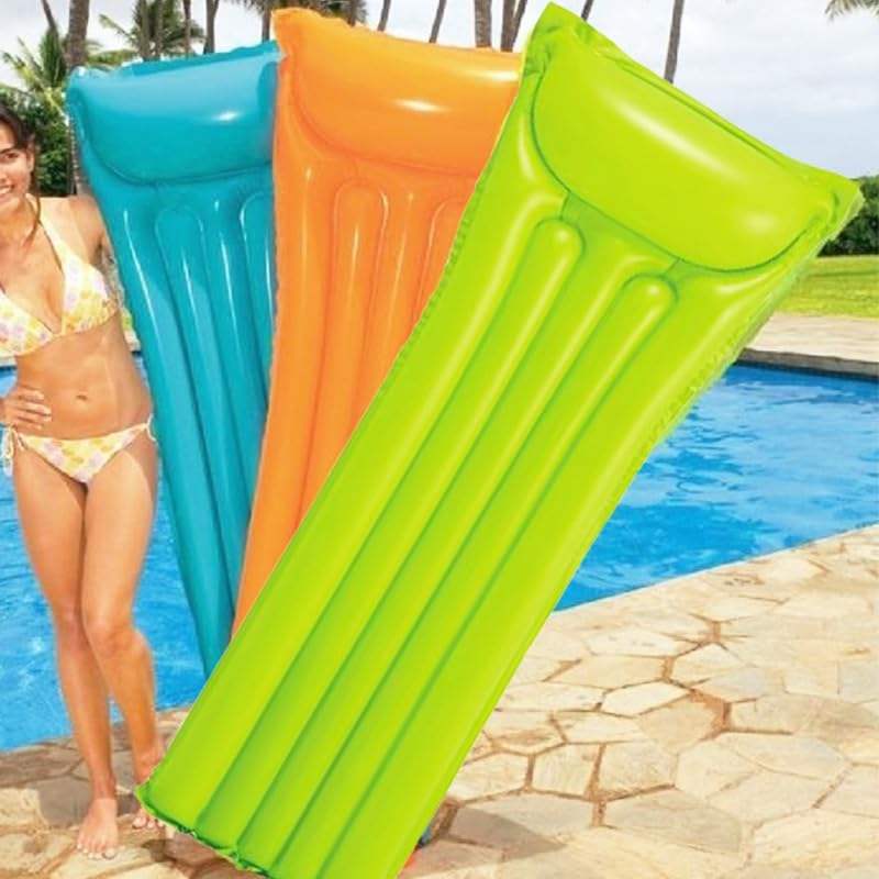 INTEX 183x69cm Inflatable Mattress Pool and Beach Lounger 5 Tubes Green Floating Lounger Seats