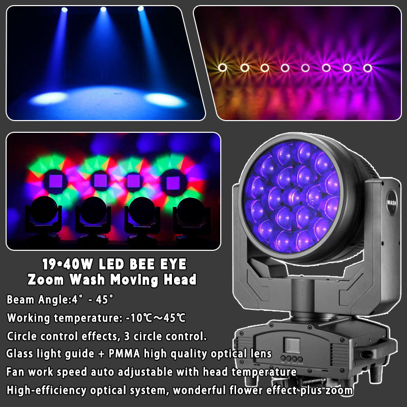 IP65 Waterproof 19x40w Bee Eye Wash Moving Head Dj Concert Stage Light Dmx512 Control Bee Eye 19x40w Led Zoom Moving Head Light