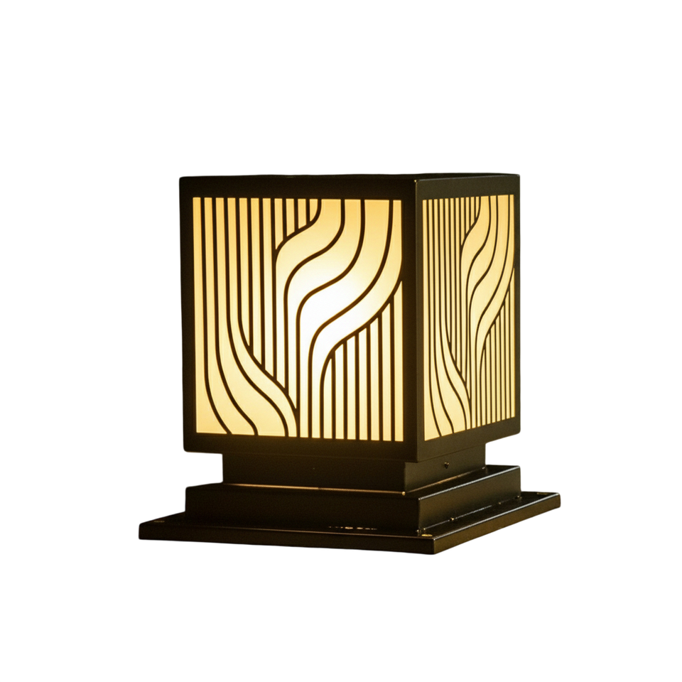 IP65 Wave LED Pillar Light, 8-inch Black Powder-Coated Steel Column Lamp, Warm Decorative Outdoor Villa Gate Lantern AC 220V